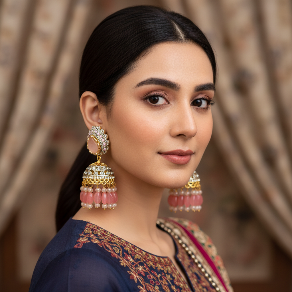 Elevate your traditional ensemble with our exquisite Crystal Jhumkey, a timeless accessory that seamlessly blends heritage craftsmanship with contemporary elegance. Meticulously crafted with premium crystals that catch and refract light beautifully, this jhumkey adds a sophisticated sparkle to any occasion. The delicate design ensures comfortable wear throughout extended celebrations, while the quality construction guarantees lasting durability. Perfect for weddings, festivals, and formal gatherings, this piece serves as a versatile complement to both classic and modern attire. An investment in authentic style that transcends seasonal trends.