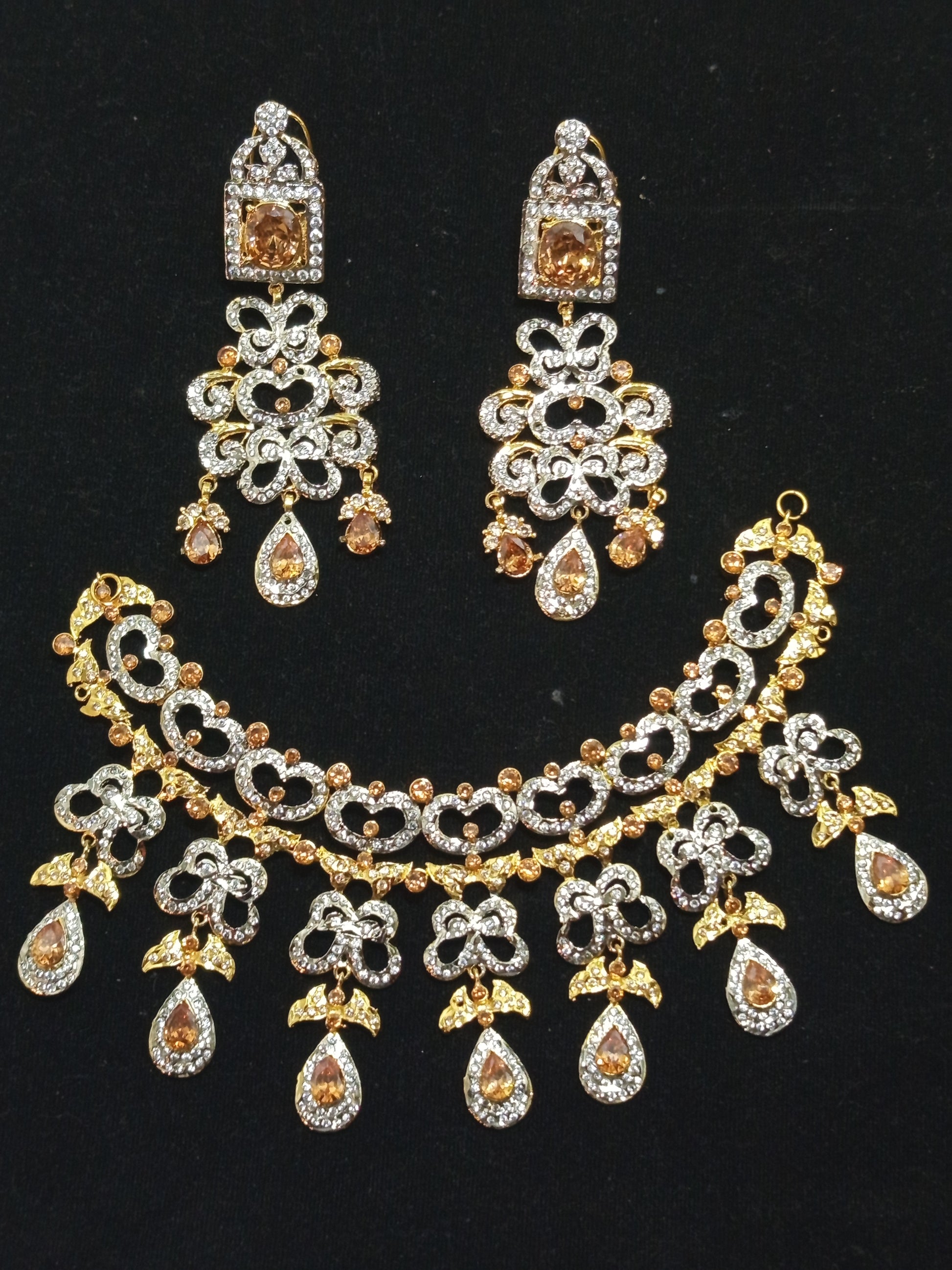 Elevate your jewellery collection with this sophisticated necklace set in champagne, expertly crafted by MODORO, Pakistan's premier jewellery brand. This exquisite two-tone ensemble features a graceful necklace paired with matching long earrings, both adorned with brilliant crystals and premium CZ zircons. The champagne hue offers versatile elegance, seamlessly complementing both casual and formal occasions. Each piece showcases meticulous craftsmanship and quality materials, designed to catch light beautifully and enhance your natural radiance. Perfect for those who appreciate refined luxury and timeless style.