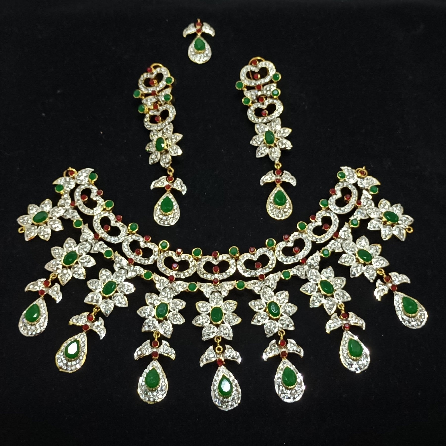 Necklace victorian in Green and Ruby shade crystals with Zircons